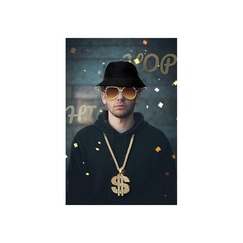 YUNHENTONG Dollar Chain Hiphop Costume Set, 5 Pieces Hop Rapper Costume Accessories, Men's Costume, 80s 90s Men's Hip Hop Accessories Necklace for Carnival