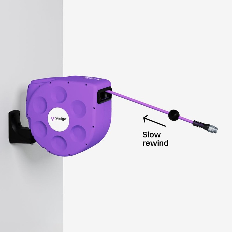 - SLOW REWIND SYSTEM: Built-in slow rewind technology ensures the hose retracts smoothly and safely without snapback or tangling, keeping your space tidy and organized.