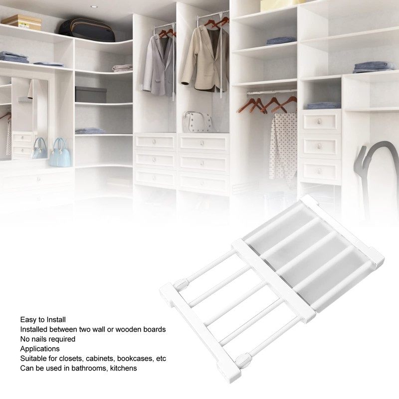 - APPLICATION: Divider shelf is suitable for closets, cabinets, bookcases, etc. It can be used in bathrooms and kitchens to give you more space to store your items.