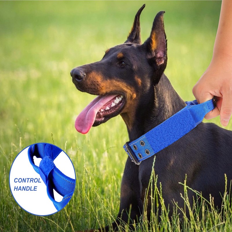Yunleparks Reflective Dog Collar Tactical Dog Collar Heavy Duty Dog Collar with Control Handle and Metal Buckle for Dog Training(Large, Blue)