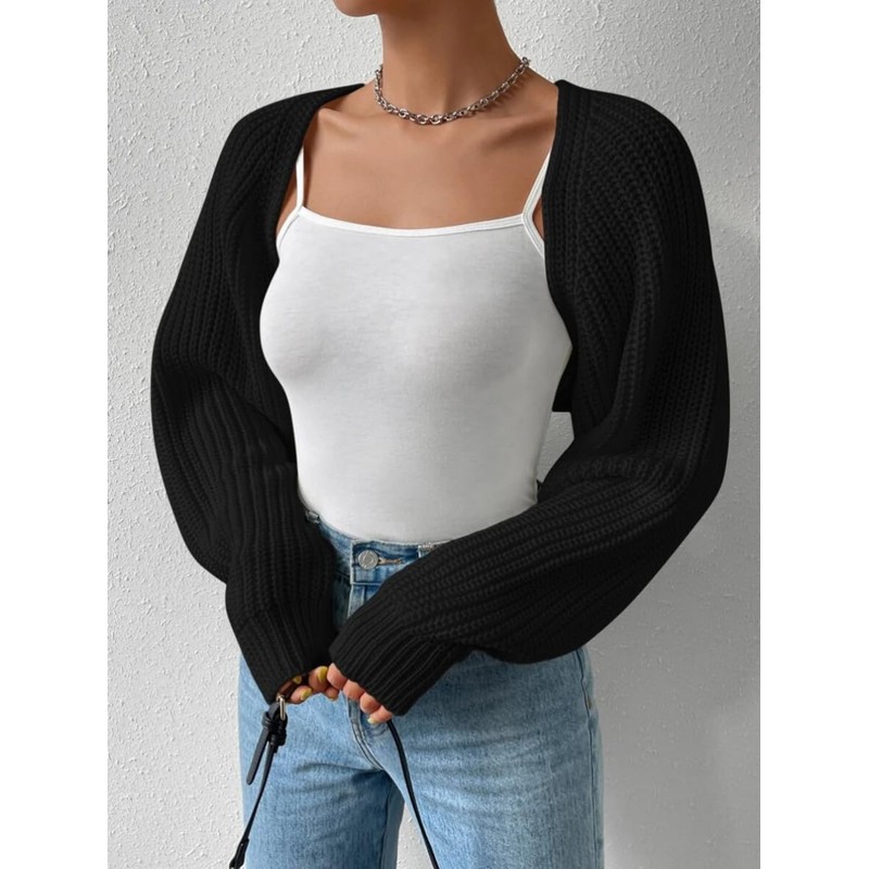 YUNLORIA Women's Bolero Shrug Sweater Rib Knitted Long Sleeve Open Front Cropped Cardigan Y2K Tops (US, Alpha, Medium, Regular, Regular, Black)