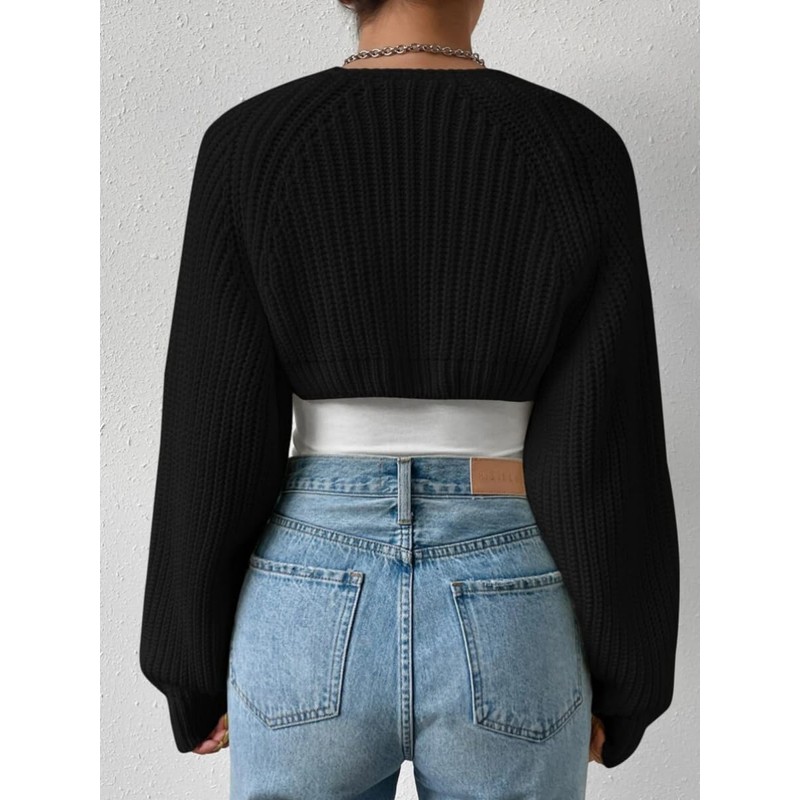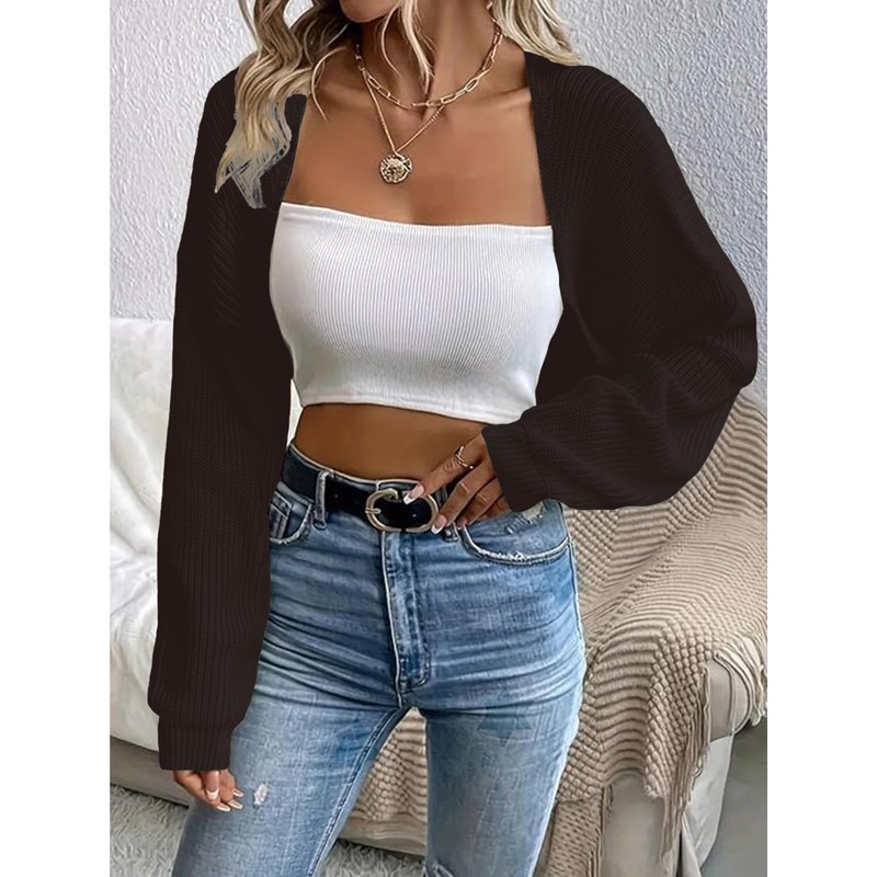 Women's Bolero Shrug Sweater Rib Knitted Long Sleeve Open Front Cropped Cardigan Y2K Tops