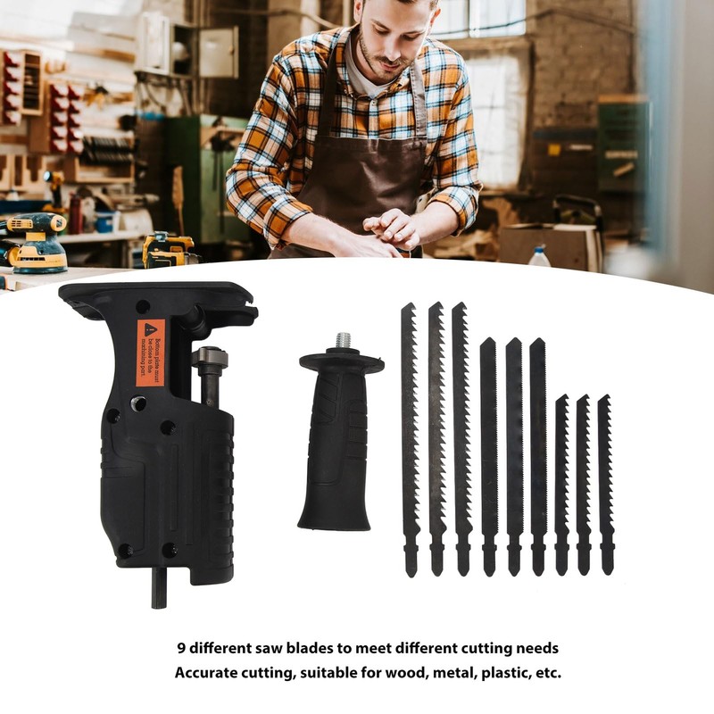 Yunseity Reciprocating Saw Adapter, Drill Saw Attachment, with 9 Replacement Saw Blade, Electric Drill Tools for Wood Pipe Cutting, YUNSEITYCGAW045VP1