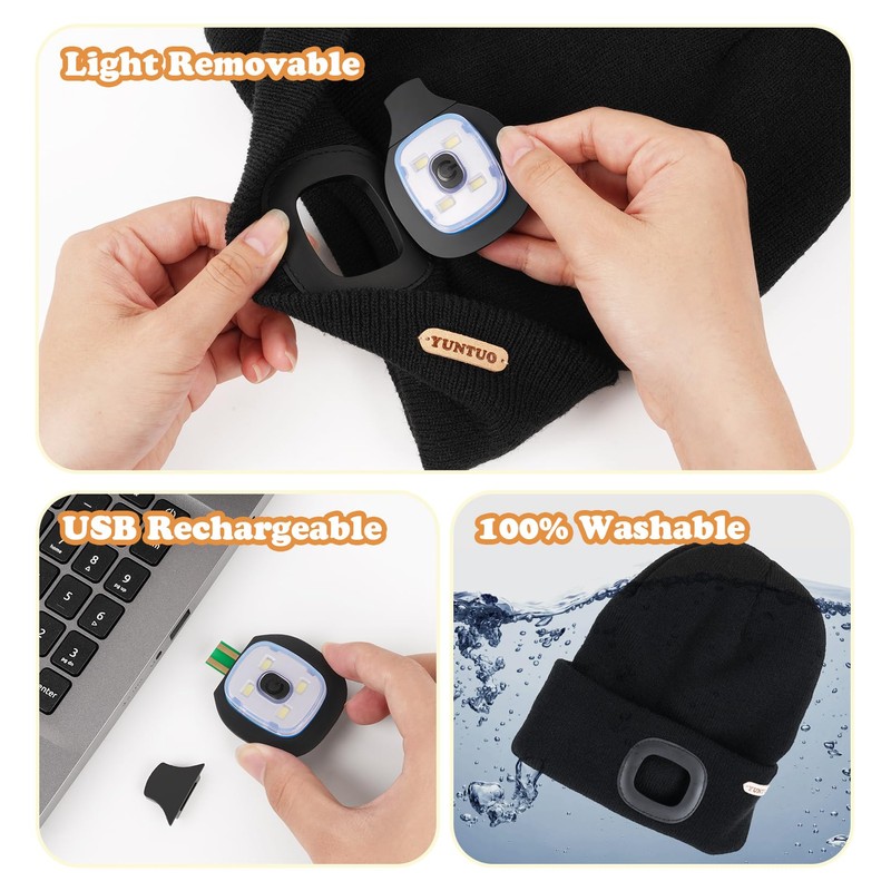 - Hassle-Free Charging: Easily recharge the LED light through any USB port, car charger, or power bank. A full charge gives up to 4 hours of continuous light or 6-8 hours of intermittent use. Plus, the winter led cap is machine washable, so it’s always clean and ready for the next adventure