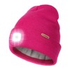 YunTuo Fleece Lined Kids LED Beanie Headlamp Hat with Light Bulit in, USB Rechargeable Flashlight Winter Knitted Stocking Caps, Gifts for Boy Girl Children Rose Red