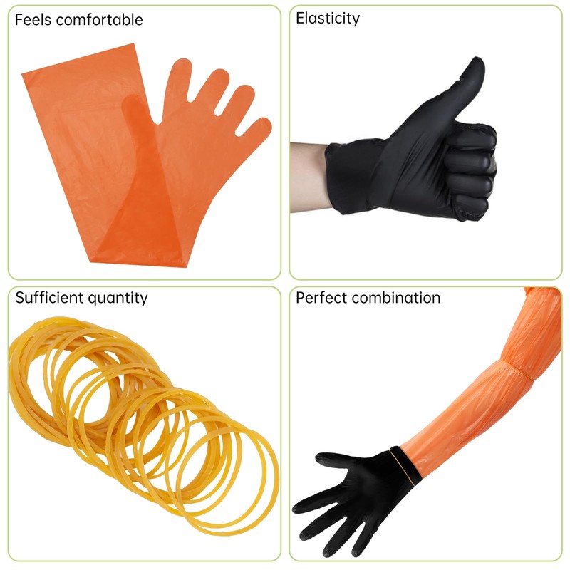 - Field Dressing Gloves Kit: You will receive 60 pieces field dressing gloves, including 15 pairs long gutting gloves, 15 pairs short cleaning gloves and 15pcs yellow rubber bands. Different sizes for you to choose and enough quantity to meet your daily needs.