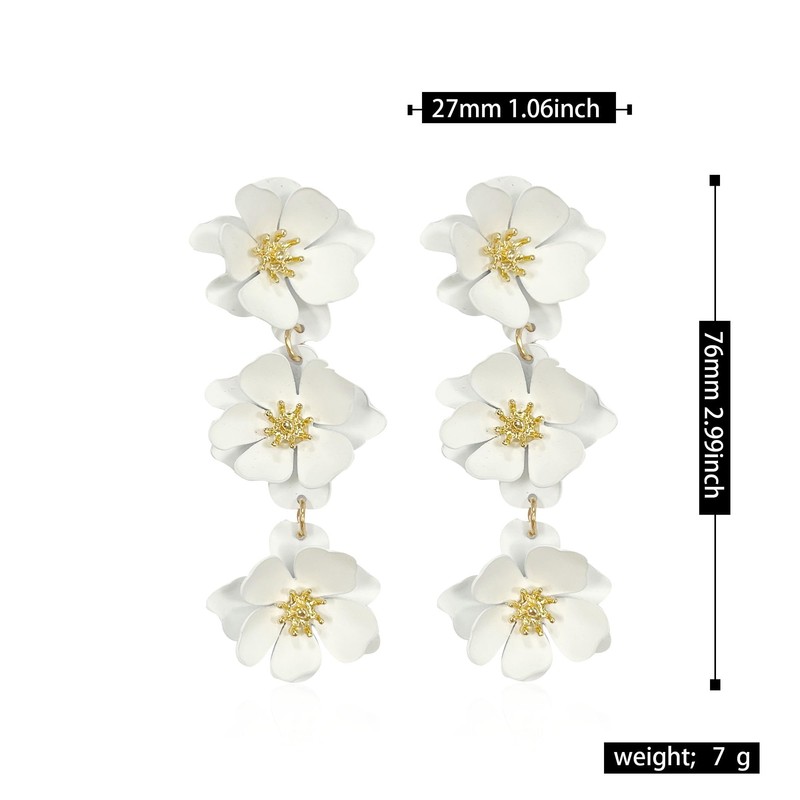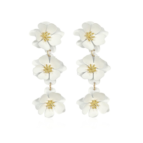 YUNXI Boho Metal Poppy Flower Dangle Earring Matte Painted Dual 3 Layer Tassel Fashion Bohemian Flower Floral Petal Tiered Drop for Women (White)