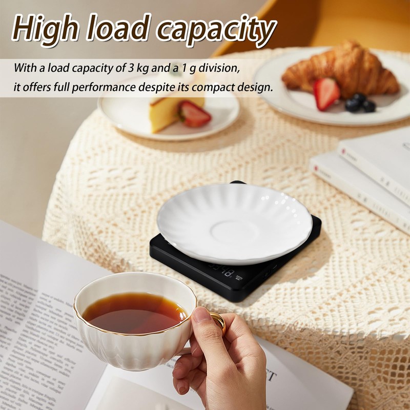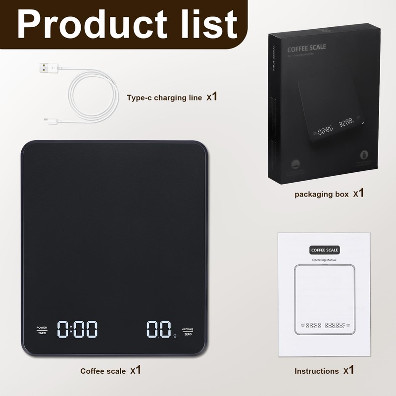 - Klare LED-Anzeige: Die digitale Kaffeewaage verfügt über eine LED-Hintergrundbeleuchtung, die eine klare digitale Anzeige bietet. Die Ergebnisse auf der LED-Anzeige sind sowohl bei Tageslicht als auch in dunkler Umgebung deutlich sichtbar. Und der LED-Bildschirm schaltet sich nach 120 Sekunden Inaktivität automatisch aus, was den Benutzern ein komfortableres Erlebnis und ein klares Messerlebnis bietet.