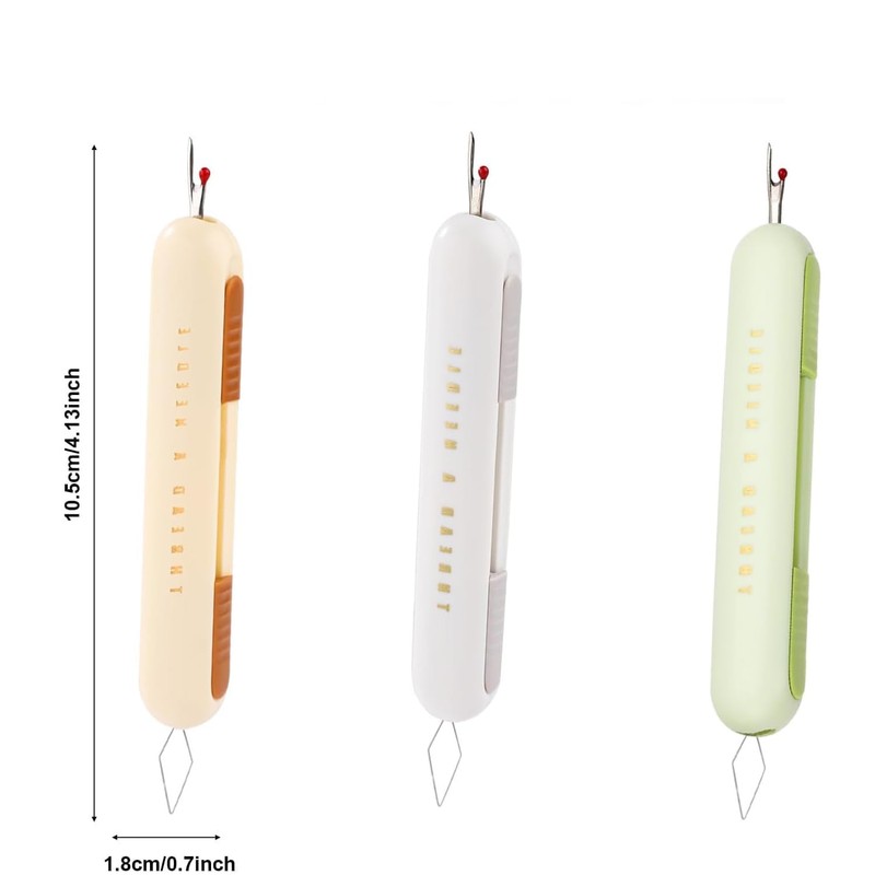 YUNYU Set of 3 2-in-1 Sewing Aid - Needle Threader & Seam Ripper in Brown/Beige/Green | Secure Retractable Mechanism | Practical Sewing Accessories for Beginners & Professionals