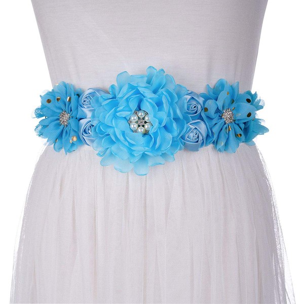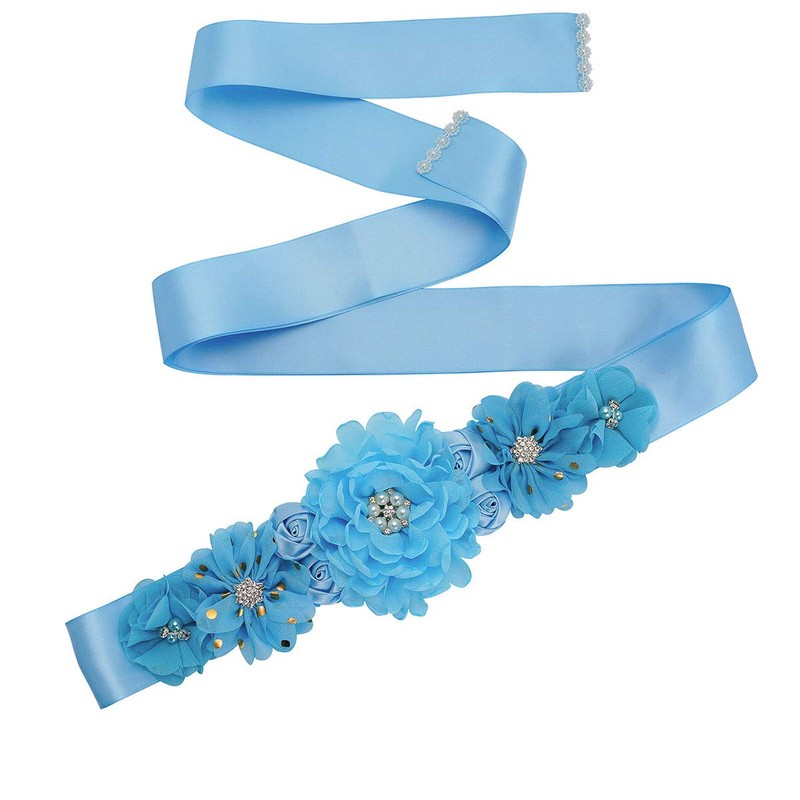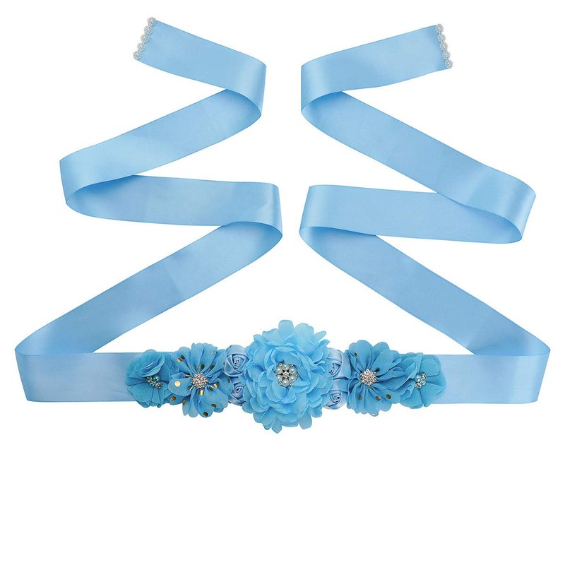 Yunyuebridal Cinturón de maternidad con flores de cristal con diamantes de imitación y perlas, Azul / Patchwork, Talla única