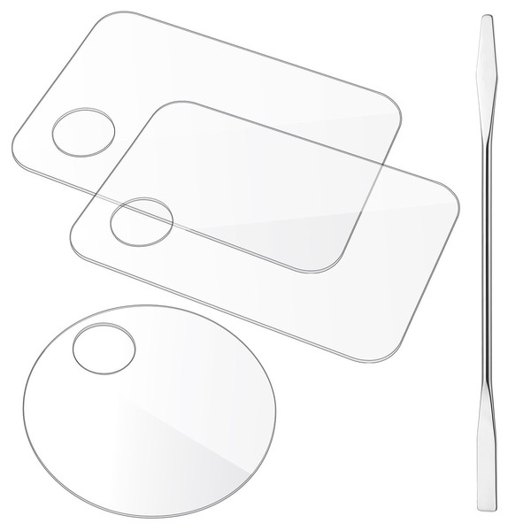- Package Includes: Our package includes 2 square palettes, 1 round palette and 3 stainless steel mixing sticks, a variety of styles for you to use, and the different styles of spatulas on both ends of the makeup spatula allow you to easily mix colors and apply makeup.