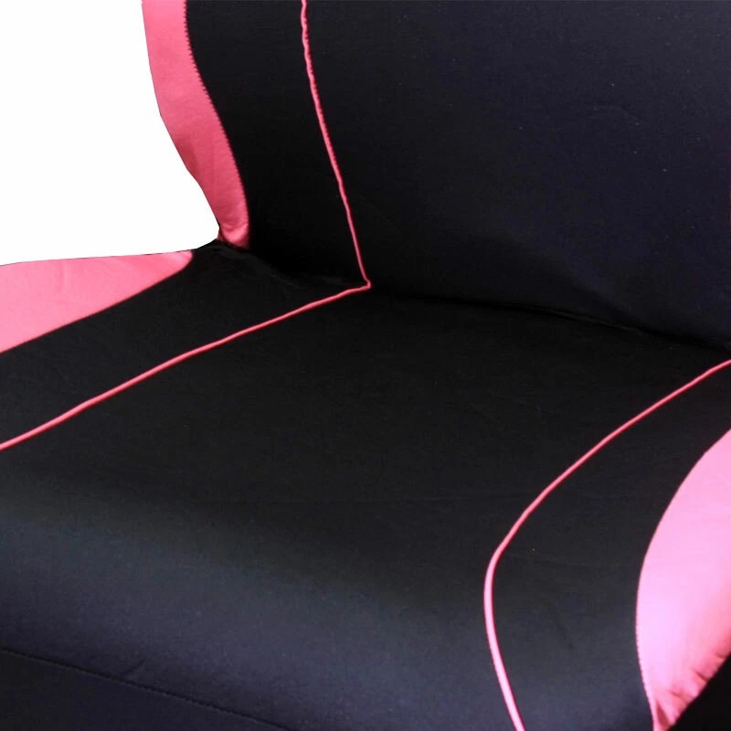 New sleek design complete car seat covers set in 2 tone black and pink color. Made by polyester with stretchable ability to