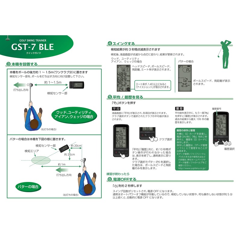YUPITERU GOLF GST - 7BLE Swinging Practice Device, Unisex, Usage Time: About 10 Hours Fully Charged, Product Size: 4.9 inches (D) x 2.4 inches (W) x 0.7 inches (H) (124 x 60 x 18 mm)