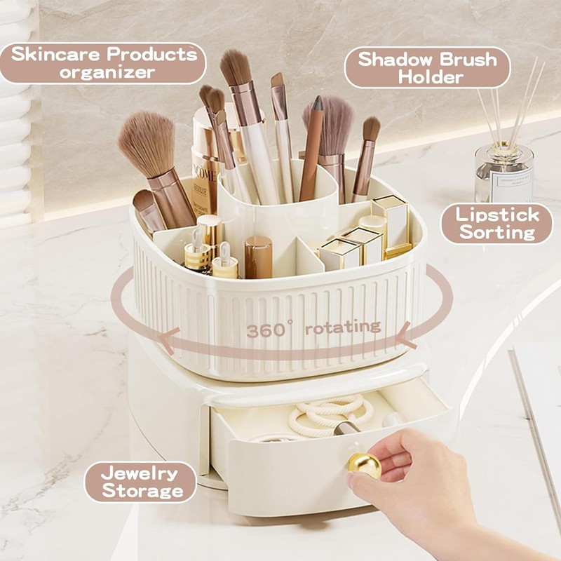 Yupneih Desk Organiser, 360° Rotating Pen Holder, Pen Organiser with Double Layer, Can Hold Pencils, Coloured Pencils, Stationery, Cosmetic Brushes