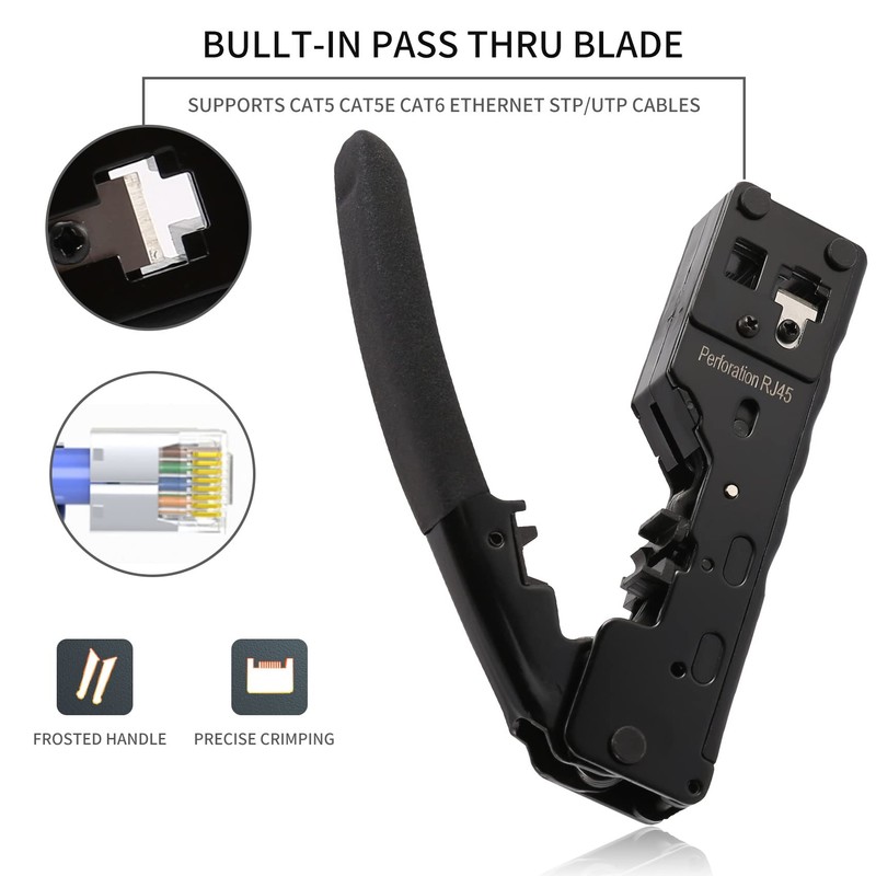 YUPVM Cat5 Cat6 Cat7 Pass Through Crimper for RJ45 RJ12 RJ11 Network Connectors Modular Plugs Ethernet Cables EZ Crimp Tool