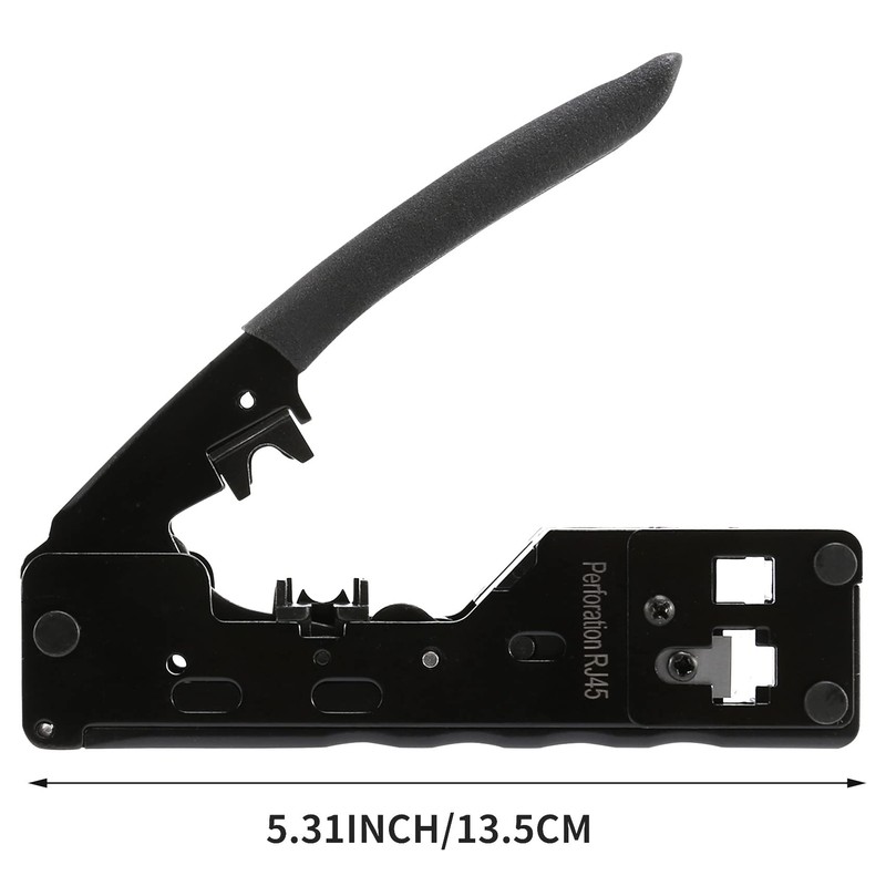 - Multi Modular Plugs Application - Fast, reliable modular-crimp connector installation for voice and data applications. Crimps RJ45 3/4/5/5e/6 (8x8) (8P8C), RJ12 6-position (6x6) (6P6C), RJ11 4-position (6x4) (6P4C) and RJ11 2-position (6x2) (6P2C). Also works for pass thru connectors with built-in pass through blade.