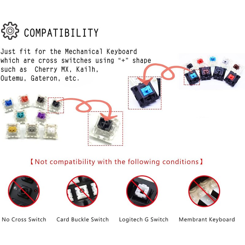 - 【COMPATIBILITY】Just fit for the Mechanical Keyboard cross switches which are use“+”shape such as Cherry MX, Kailh, Outemu, Gateron, etc.
