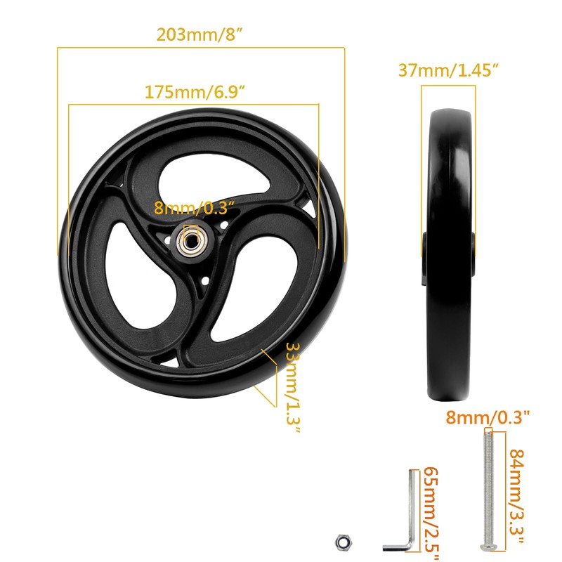- Application: The 8 inch replacement wheels can be used for medical vehicles, wheelchairs, transport chairs, rollators, knee scooters, walkers, etc