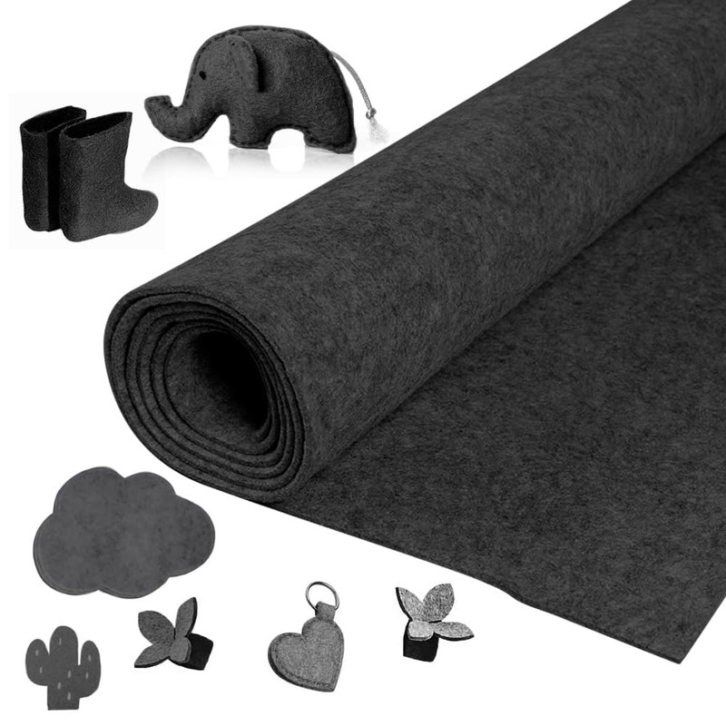 - 3 mm felt fabric: felt fabric dark grey, with a thickness of approx. 3 mm, 30 cm wide, 250 cm long. The 100% polyester felt fabric is suitable for sewing, gluing, embroidery, crafts and designing, applique, cutting, placemats, coasters, bags and much more. Enough for daily craft project.