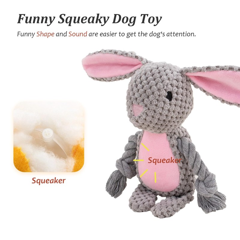 YUREMEEY Dog Toy, Cuddly Toy, Tug of War, Plush Dog Toy, Squeaky Dog Toys with Crinkle Paper, Interactive Stable Toy, for Puppies, Small, Medium Dogs, Rabbits