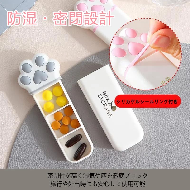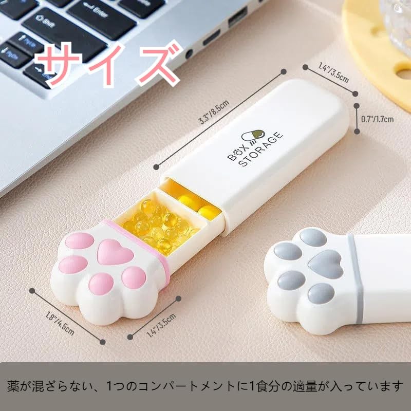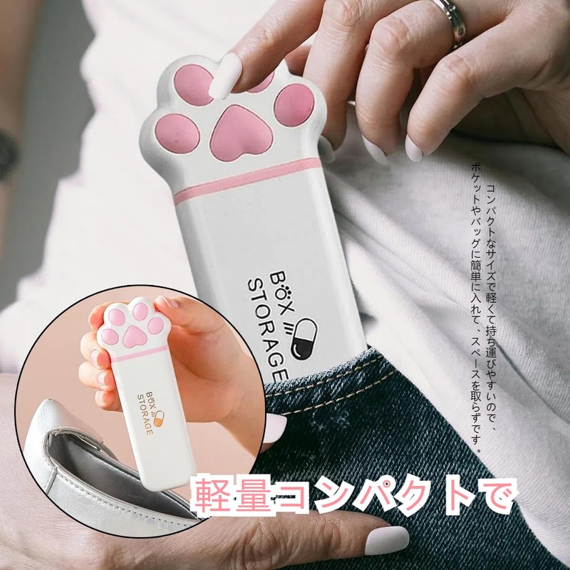 Yurika Pill Case, Portable, Medicine Case, Cat Claws Shape, 2 Supplement Case, Small 3 Times a Day, Cute Pocket Storage, 3 Compartments, Medicine Storage Case, Prevents Forget Drinks, Lightweight
