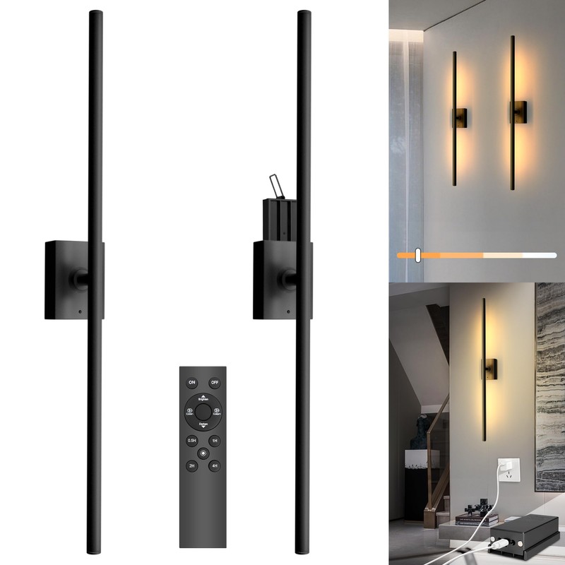 - Remote Control & Timing Memory Function: Wireless battery powered wall sconce with remote control, that can be turned on/off and the brightness adjusted via remote control. Each remote can control wall sconces set of two at 18 feet distance max; Timing memory function support Press the timer button on the remote to set the picture wall light to turn OFF automatically in 0.5H/1H/2H/4H