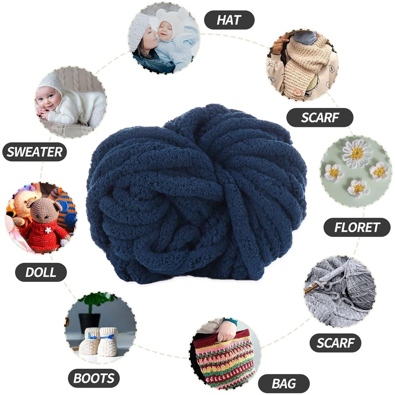 YushengTai Thick Wool, Pack of 2, 500 g, Navy Blue Chunky Wool, Thick Wool for Crocheting, Can Be Used for Knitting Cushions, Blankets, Scarves and Hats as well as Pet Beds