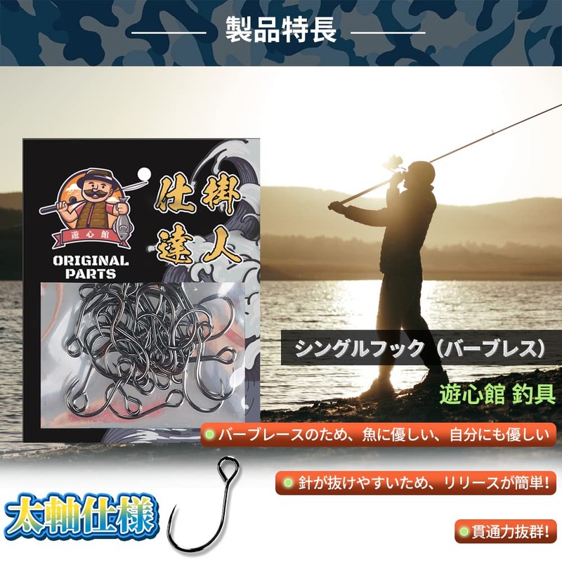 Yushinkan Fishing Gear, Stream Thick Axis Single Hook (Barbless), For Minnows, 5 Sizes, Factory Direct Large Capacity, 50 Pieces, Super Penetration, Easy Release, Trout, Mountain Stream Minnow, Stream