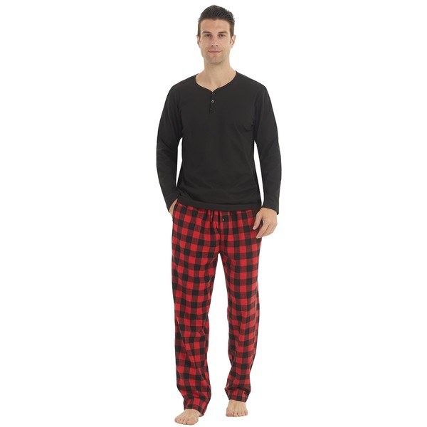 YUSHOW Mens Pajama Set Long Sleeve Henley Neck Button Top Plaid Pants Soft Wa...