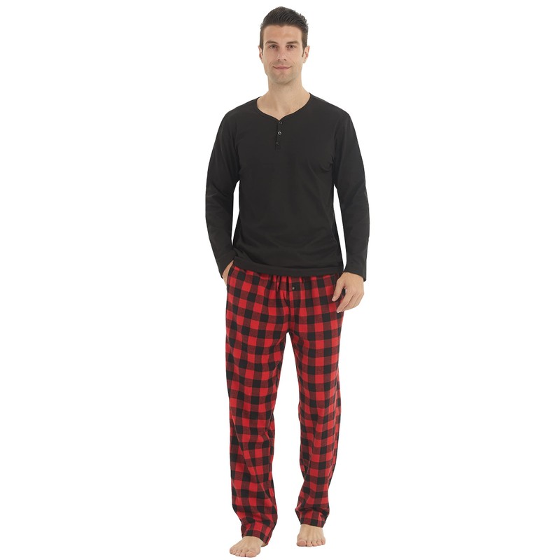 • ➤Pajamas for Men Fleece 2 Piece Set: Pajamas for men consists of a solid micro-fleece top and a pair of flannel tartan bottoms. Pajamas top with the three-button on the neckline. easy to take on/off. Stylish henley collar long-sleeved shirt combined with plaid pants, Very fashionable. Pjs bottoms with an adjustable drawstring fastening,single-button fly, and 2 side pockets carry your phones, wallets, or other small items with you on the go. These mens Pajamas bring you comfort and convenience.