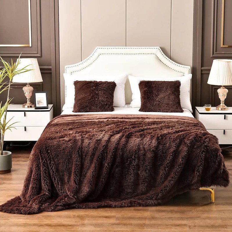 YUSOKI Brown Queen Faux Fur Blanket,2 Layers,90"x90" Without Pillows Big Soft Plush Fuzzy Large Warm Fluffy Throw Blanket for Bed