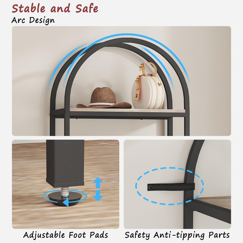 • Arched DesignThe elegant curved design on top adds a refined touch to the entire bookshelf.With its clean lines and wood grain texture, this industrial-style bookcase complements any space
