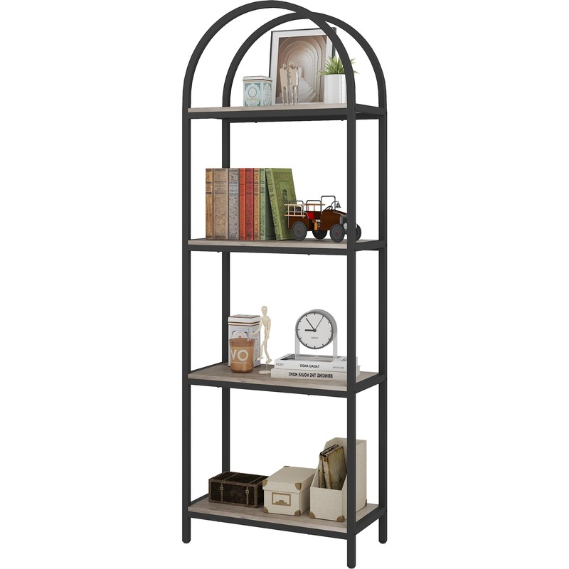 Yusong Bookshelf 4 Tier Arched Bookcase, 71.3" Tall Industrial Open Book Shelves for Living Room, Modern Freestanding Display Shelving Storage Rack Metal Frame, Office, Bedroom, Grey