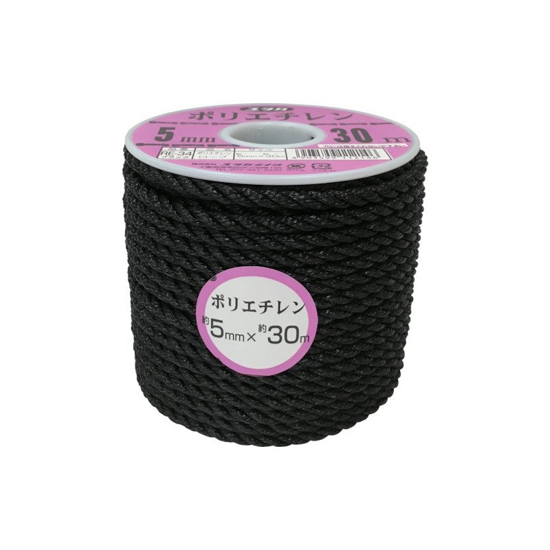Yutaka Make RE-34 PE Color Rope, Bobbin Roll, 0.2 inches (5 mm) x 99.8 ft (30 m), Black
