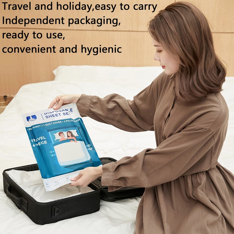 Yutianli Disposable Bed Sheets, Quilt Cover and Pillow Case Set for Hotel and Travel. Portable Sheet Set Ready to Use (Travel 4-Piece Double)