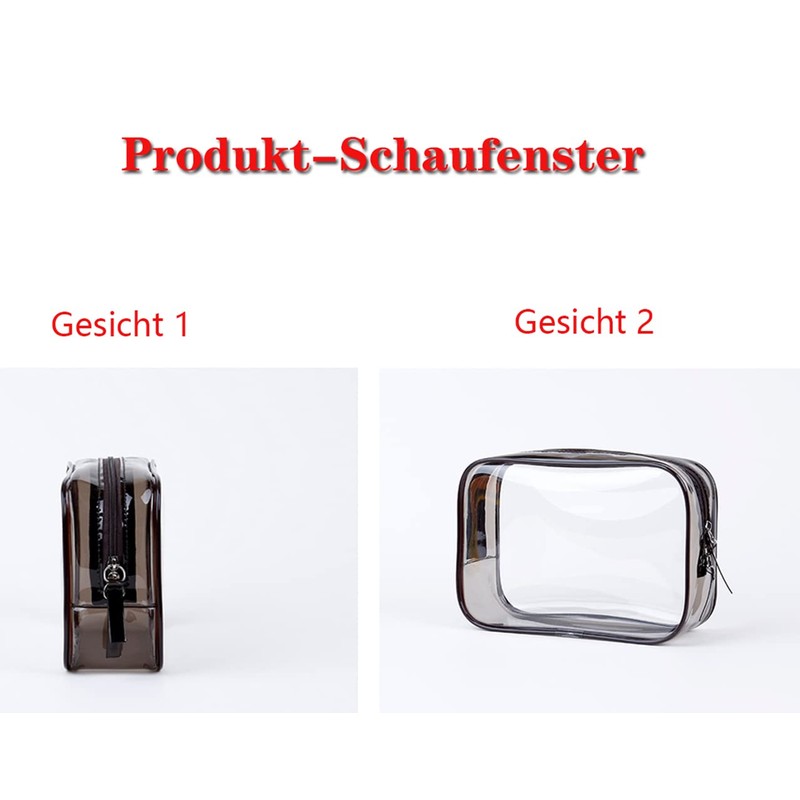 YUTOU Transparent Cosmetic Bags Pack of 2 Waterproof Makeup Bag Portable PVC Cosmetic Bag with Zip for Bathroom Holiday Travel (Black + Coffee, black, Fashion