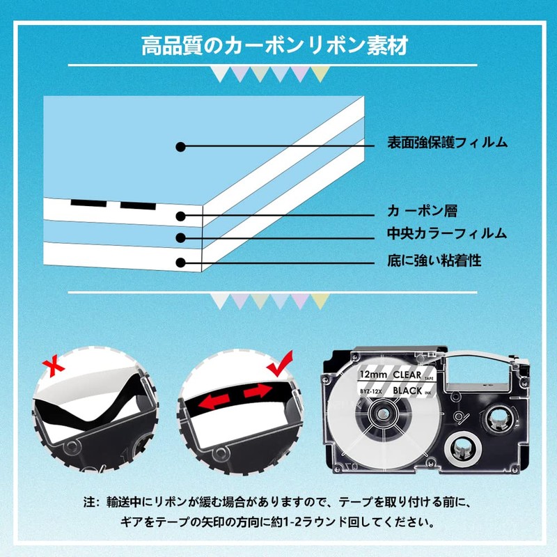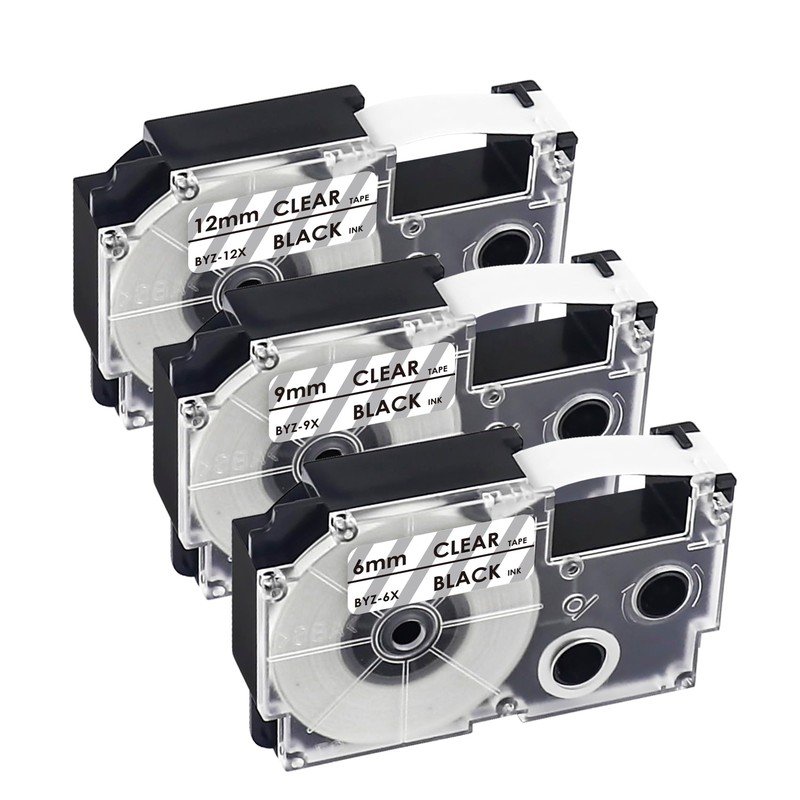 - Main unit: Compatible with Casio NAMELAND Tape, Nameland Tape, 0.2 inch (6 mm), 0.4 inch (9 mm), 0.5 inch (12 mm); Transparent with black letters in combination, 26.4 ft (8 m), 3 piece set