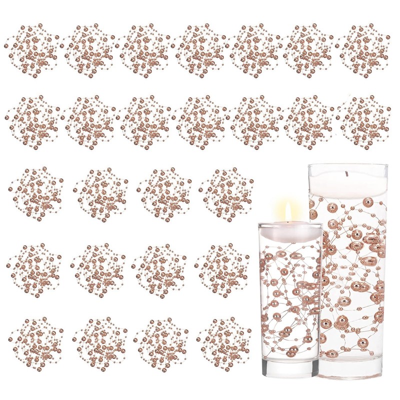 YUUIKLLE 26 Pcs Artificial Pearl String for Floating Candle Set Faux Pearls Beads String for Centerpieces Table Decoration Vases Filler Wedding Birthday Home Decor Party Holiday(Rose Gold)