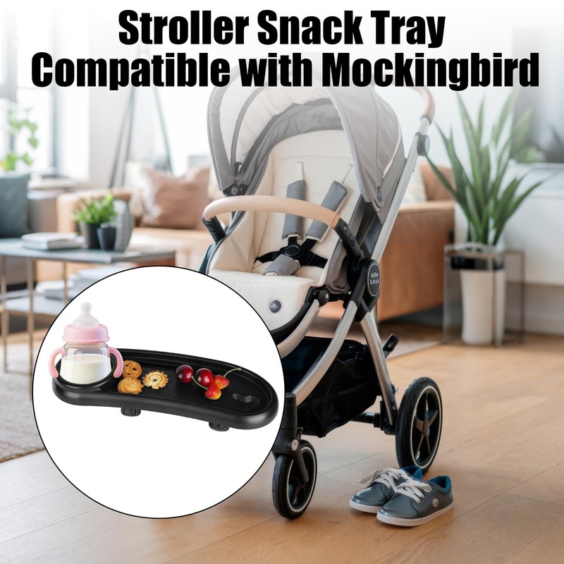 - Seamless Attachment:Designed for Mockingbird strollers, this stroller snack tray attachment installs tool-free in seconds. The snack tray for stroller locks securely with adjustable straps, while the stroller tray attachment fits most models effortlessly