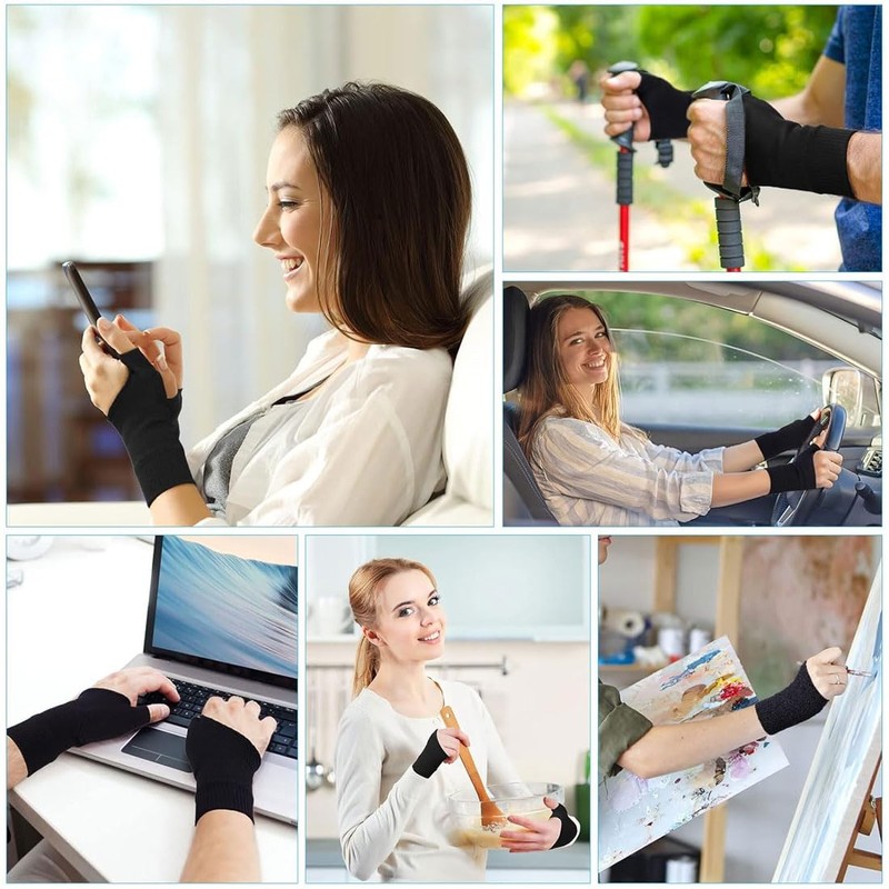 Open finger design: you can freely touch and hold, make calls, type, cook, play games etc. No distractions. Finger arthritis free gloves provide comfort and support for every finger and hand during your daily activities.