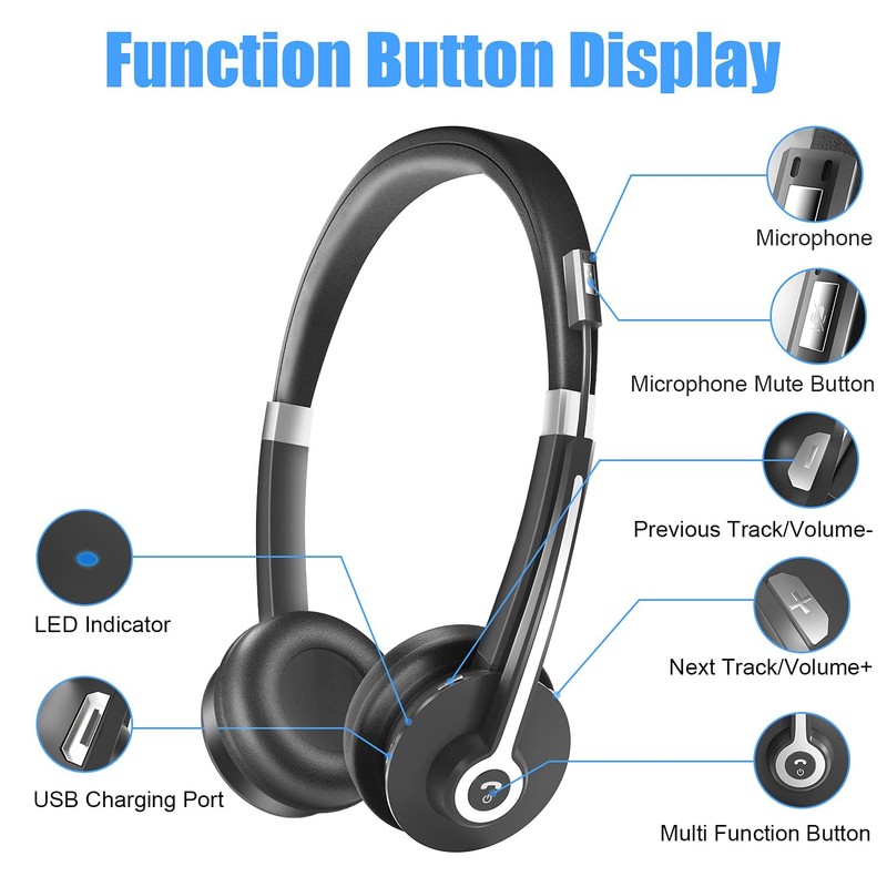 - 【Tecnología Bluetooth 5.0】Los auriculares manos libres son de Bluetooth 5.0 y emparejamiento rápido y estable, la distancia de conexión es de hasta los 15m. Se pueden emparejar fácilmente con la mayoría de los dispositivos móviles (compatible con móviles iOS& Android, tableta, ordenador portátil, etc. Nota: Se necesita un receptor USB para conectar el PC/portátil sin Bluetooth incorporado.