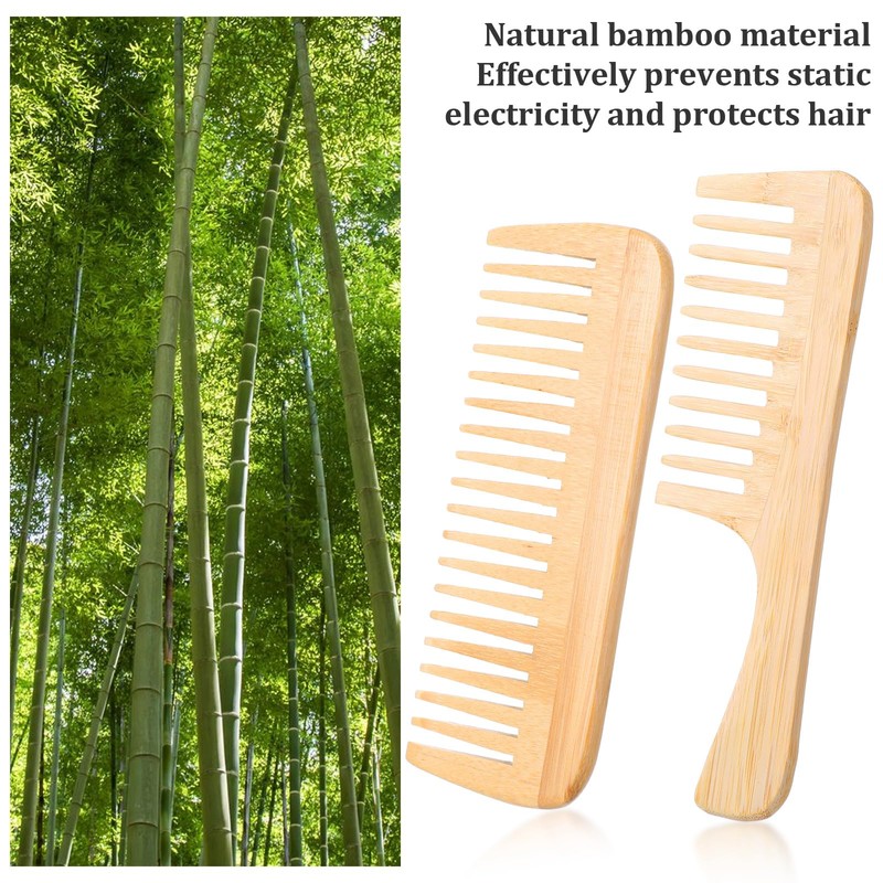 YUXIANLB 2PCS Bamboo Comb Anti-Static Wide Tooth Combs Natural Bamboo Comb Se...