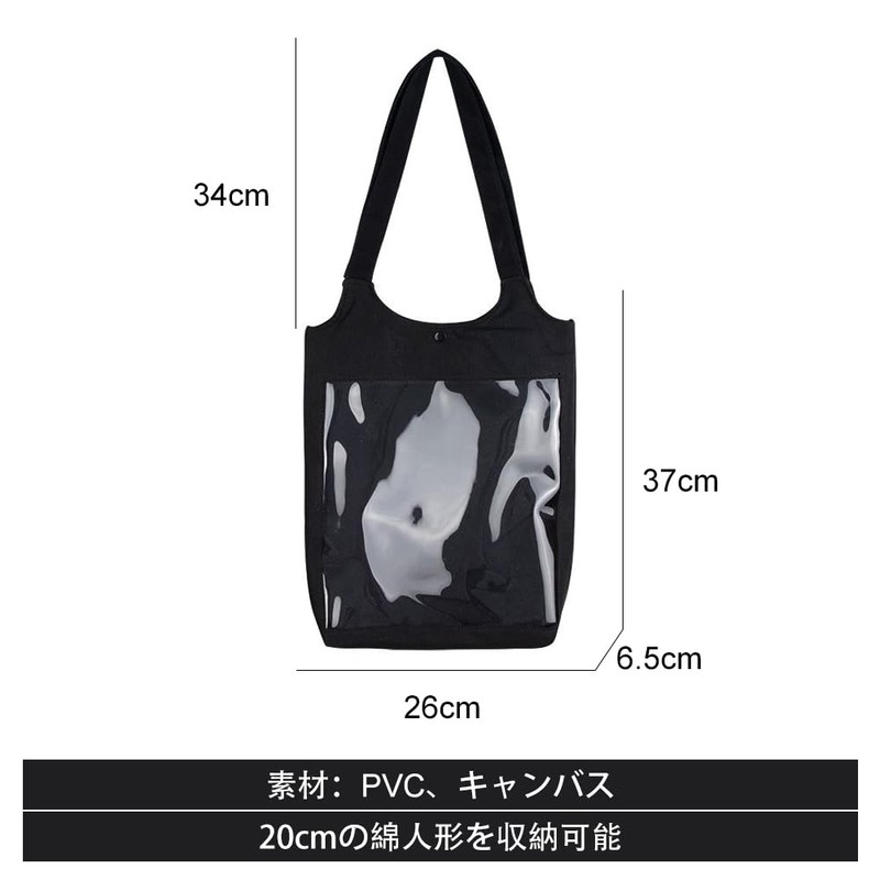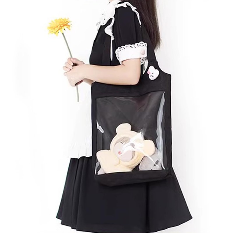 YUYAKESHI Pain Bag, Transparent Window, Showing Bag, Tote Bag, Pushing Toy, 7.9 inches (20 cm) Stuffed Animals, Clear, Pain Sheet Included, Black