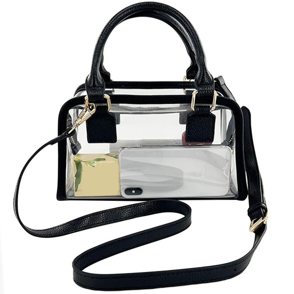 YUYAKESHI Transparent Shoulder Bag, PU, Square, Clear, Skeleton, PVC, Outing, Doll Holder, Stylish, Handbag, Waterproof, Boston Bag, 2-way, 7.9 x 5.5 x 3.9 inches (20 x 14 x 10 cm), Black
