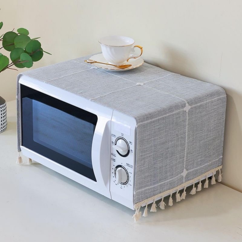YUZHANGHE Bedside Table Tassel Cover Cloth Suitable for Bedside Table TV Microwave Washing Machine Home Decoration Fabric Tablecloth Cover -Khaki