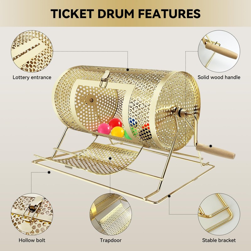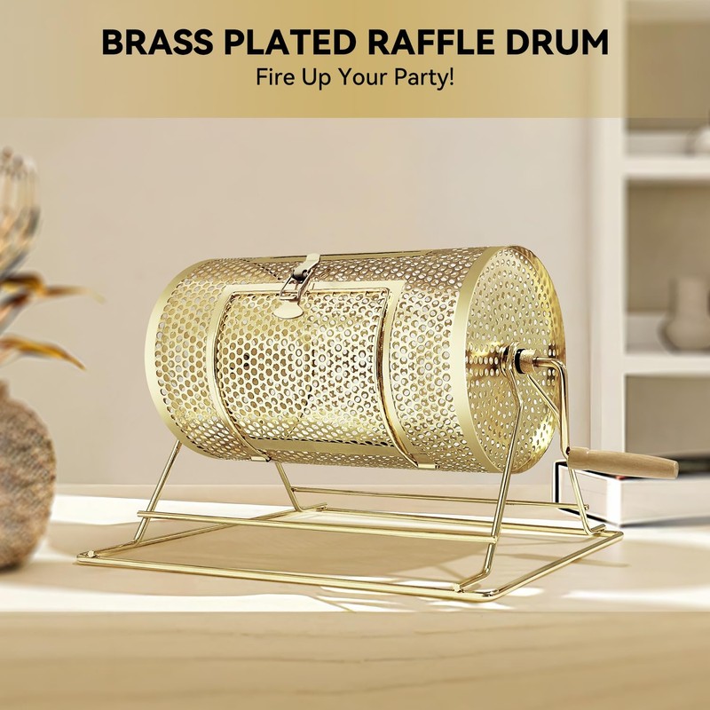 - [Heavy-duty Steel Raffle-drawing Ticket Drum] Made of good quality metal with a layer of bronze, which ensures a long time use. The bronze appearance makes the raffle drum a beautiful ornament at home. Its rectangle base provide this raffle ticket spinner with better stability.