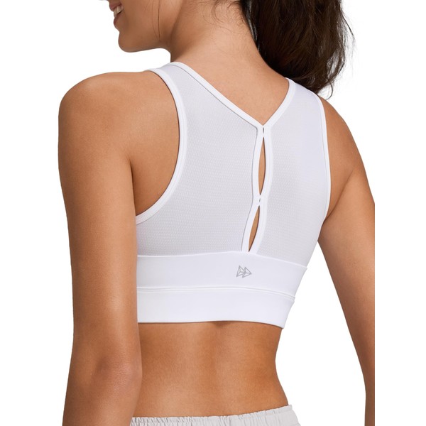 Yvette Front Zip Sports Bras for Women High Impact Supportive Mesh Back Bra for Running, White, S+