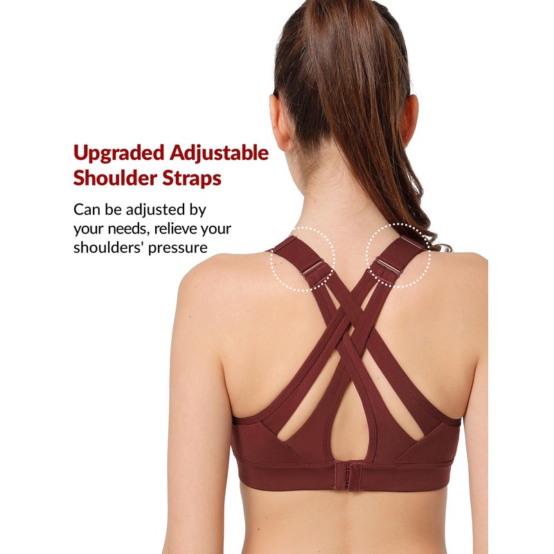 Yvette Sports Bra High Impact Adjustable Criss Cross Back, Full Support for Large Bust No Bounce, Burgundy,L Plus