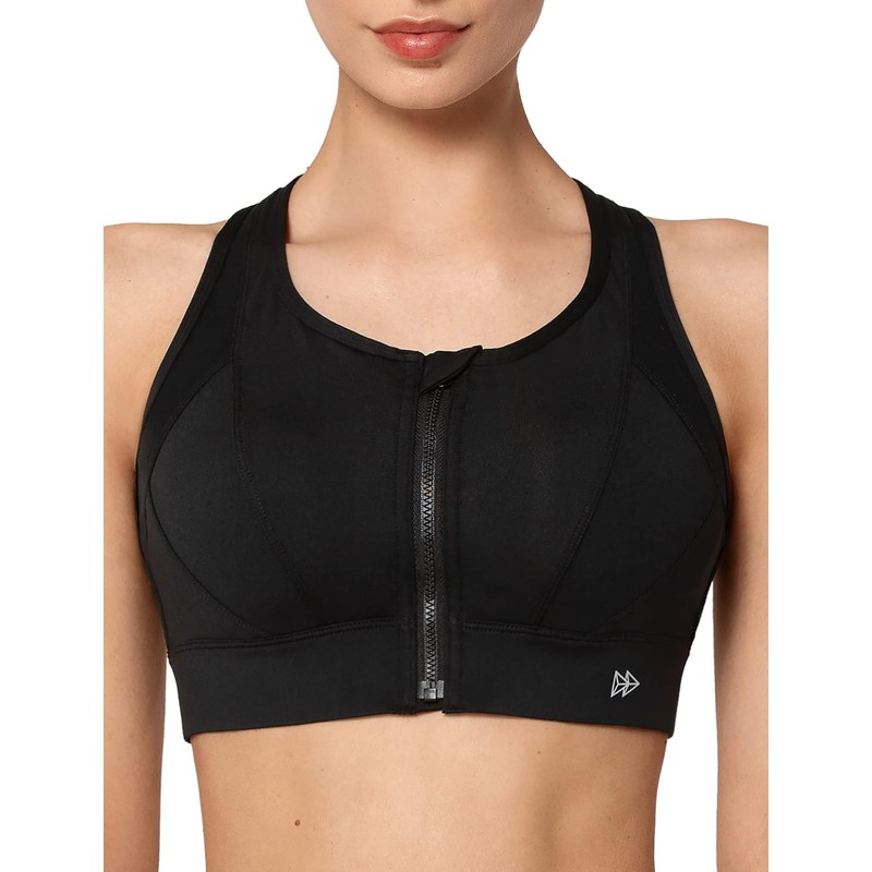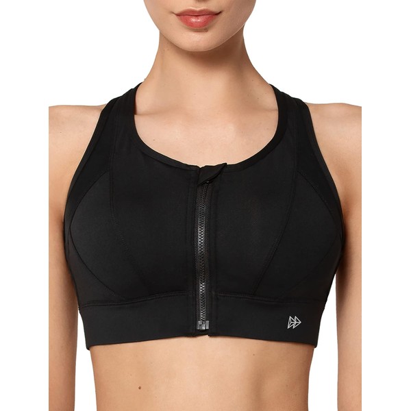 Yvette Strong Support Sports Bra Large Breasts with Front Closure Mesh Ringer Back Without Underwire for Fitness Running, black