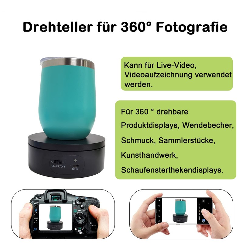 Note: AA rechargeable batteries. The size may be slightly too large, which will cause the battery cover to not be closed. Extremely quiet, quiet electric turntable The electric turntable uses an advanced motor that makes the operating process more stable and reliable. And the sound of the turntable is about 40-50 dB, which meets the recording standards of libraries, and is the perfect choice for video recording. It is widely used in themed exhibitions, shop windows, fixed displays, supermarkets that connect the power supply and rotate 360 degrees, so suppliers can present their products all around. The battery-operated turntable works quiet and quiet energy consumption. And does not affect the recording.